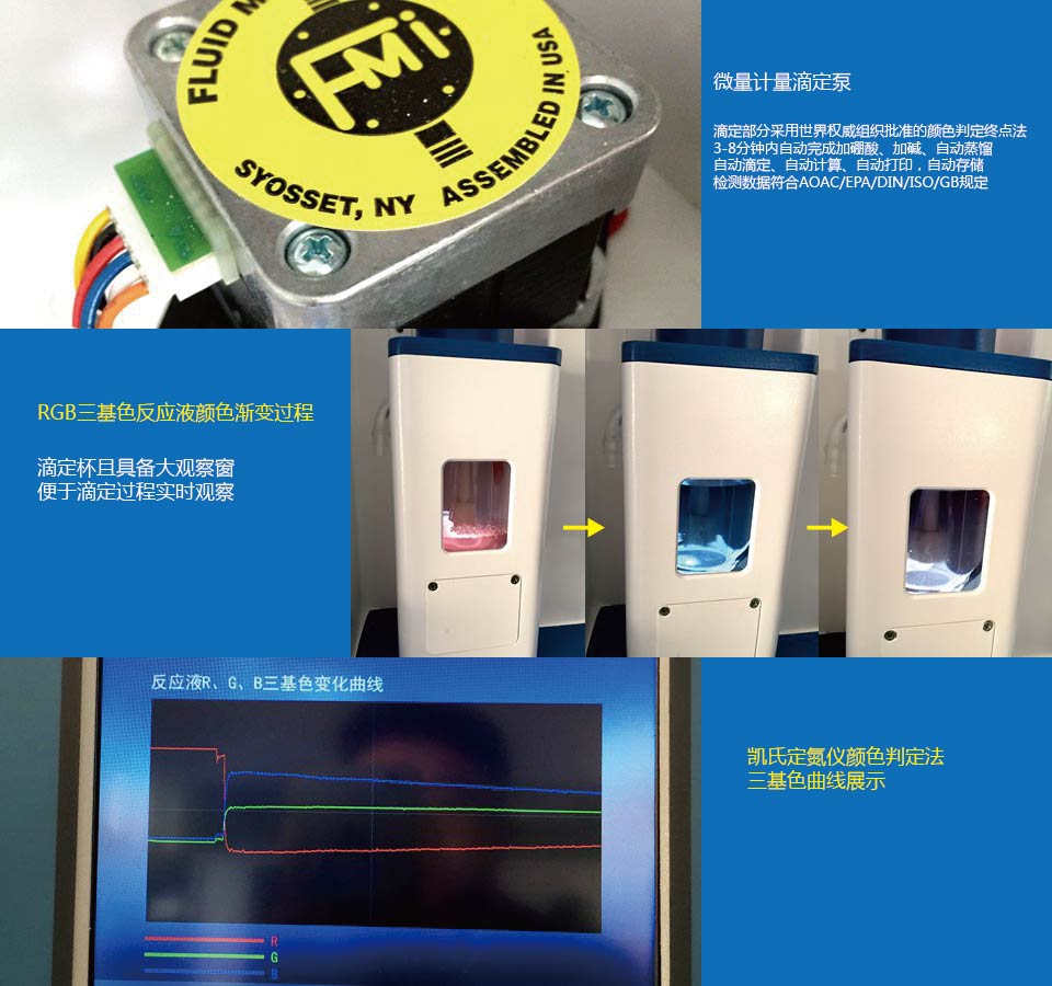 三、消解结束进入蒸馏滴定阶段(NKY6120全自动凯氏定氮仪,采用的是边蒸馏边滴定同时进行的,终点颜色判定法)