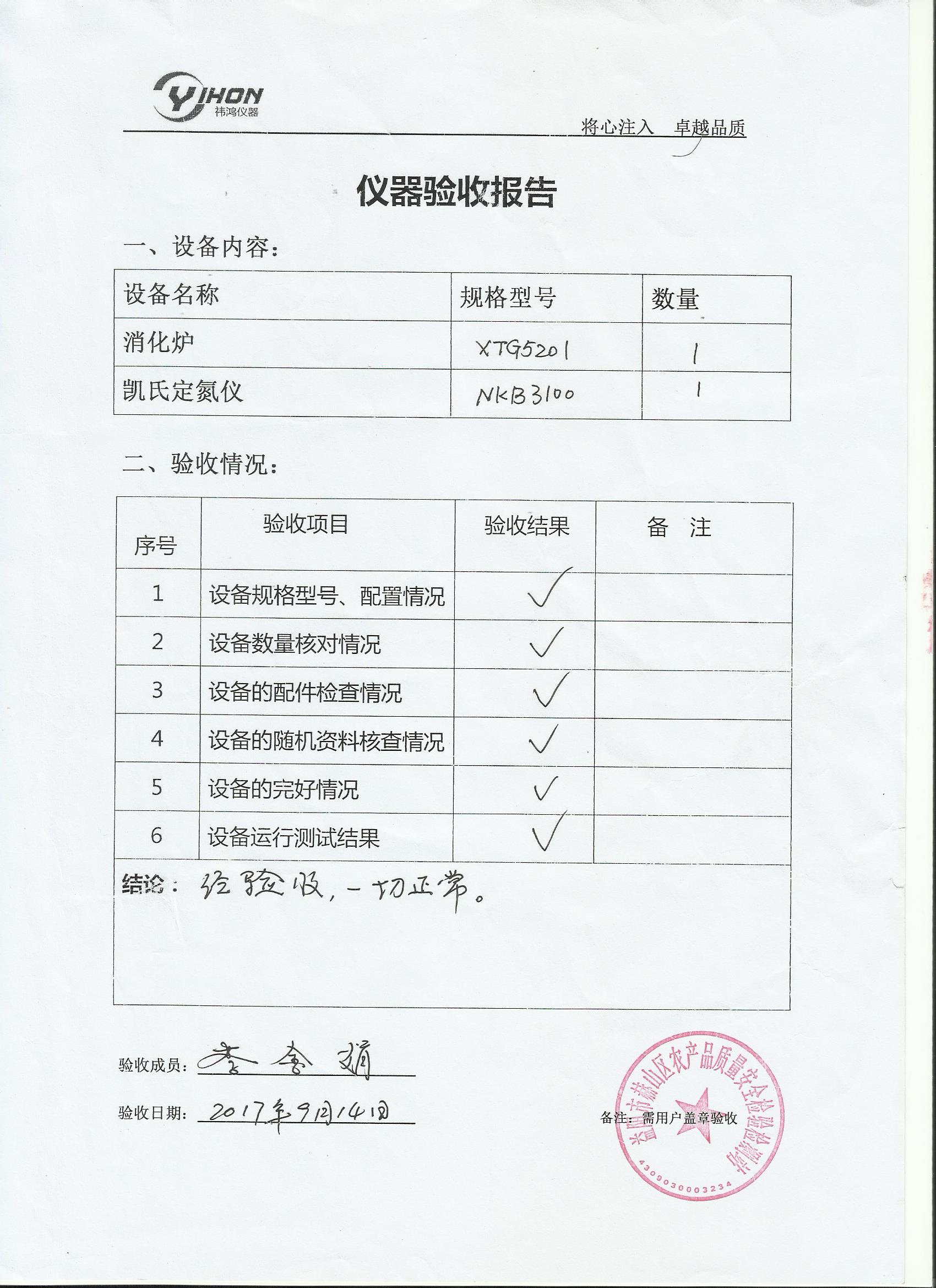 定氮仪验收报告